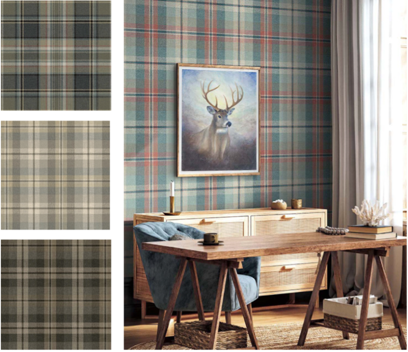 • Stature : The Gentlemen wallpaper design evokes a sense of stability, authority, and subtly elevated social status. It is often used in rooms that require calmness and a strong, grounded atmosphere—such as home offices, art studios, libraries, showrooms, or even stylish bars.