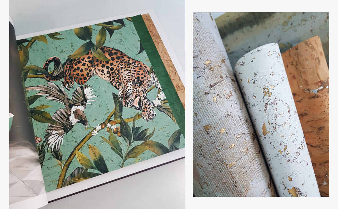 วอลเปเปอร์ติดผนังที่ถ่ายทอดเสน่ห์จากธรรมชาติ โดดเด่นด้วยเทคโนโลยีการแปรรูปวัสดุธรรมชาติและเทคนิคการพิมพ์ลายบนวัสดุไม้คอร์กวีเนียร์ (Cork Veneer) และ Woodskin ทำให้ดีไซน์มีมิติและพื้นผิวที่เป็นเอกลักษณ์ ลายพิมพ์ได้รับแรงบันดาลใจจากผืนป่า พฤกษศาสตร์ ถ่ายทอดลงบนพื้นผิวไม้คอร์ก เสริมด้วยสีเมทัลลิก ให้ความงามเรียบง่าย แฝงความหรูหรา และกลิ่นอายความทันสมัยสไตล์รัสติก